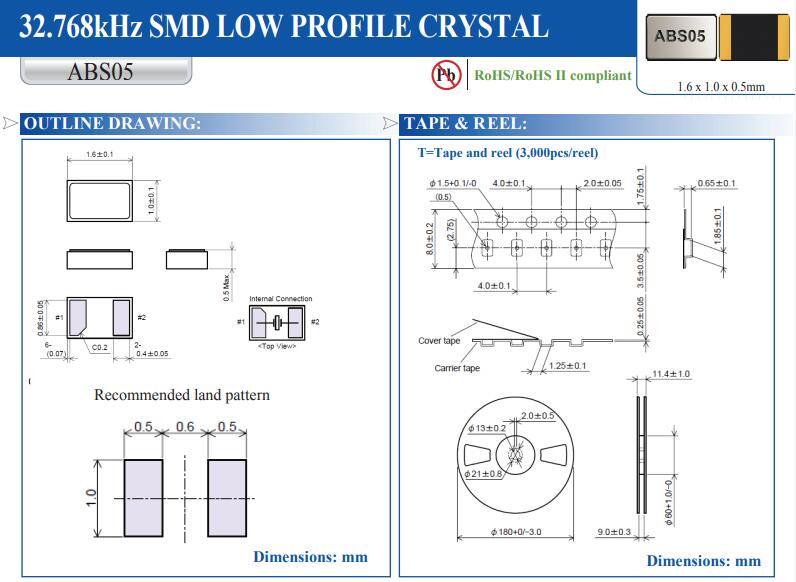 最近ABS05-32.768KHZ-T晶振,ABS07-32.768KHZ-T晶振異常的熱門,使用的客戶也是相對的蠻多的。ABS05型號系列的產品是32.768K里邊小尺寸晶體,1.6*1.0封裝,0.5mm的厚度最適用于高密度電路板,體積小,厚度薄特別適用于小型高端電子產品。陶瓷封裝也具有出色的耐熱性以及耐環境性。也適用于工業級產品,因為產品的溫度可擴展到-40~+85度.產品多數用于智能顯示信用卡,通訊和測量設備,商業和工業產品,無線通信,PDA以及PALM PILOTS等。