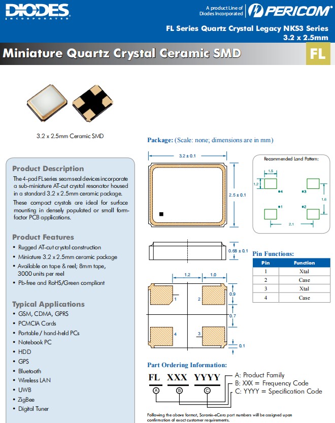 Diodes進(jìn)口晶振,FL藍(lán)牙晶振,FL2500283Z四腳貼片晶振,FL4000205Z諧振器,筆記本電腦晶振